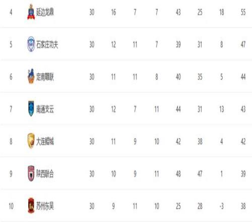 最后让我们再来看一下本赛季中甲最终的积分榜情况。