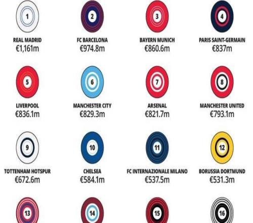 金钱联赛:皇马笑傲世界,英超垄断第二梯队